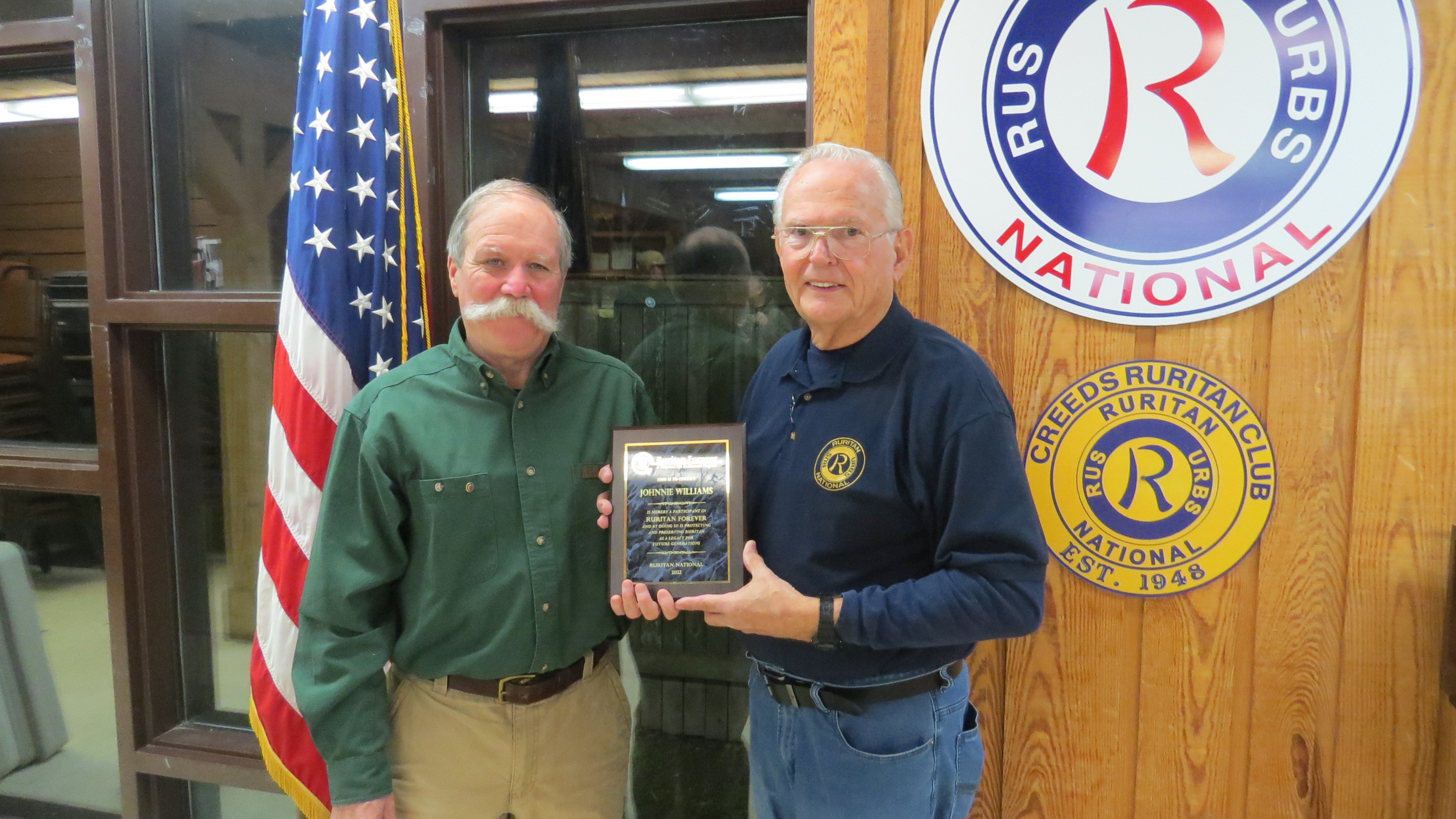 On January 10, 2023, the Creeds Ruritan Club President, Dennis Keene (Left) Awarded the Ruritan Forever Award to Johnnie Williams (Right)
